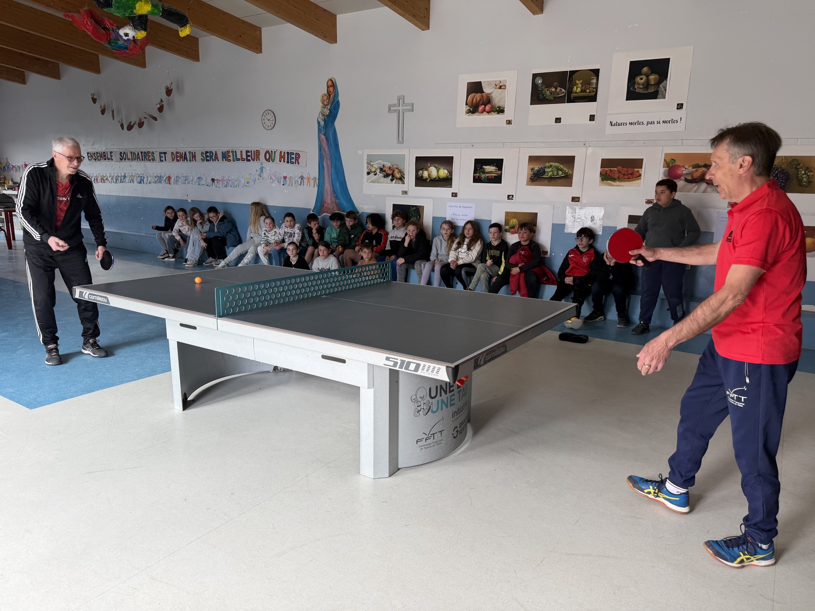 Ce lundi 30 mars, le PPCV participait au lancement de la semaine olympique et paralympique à l’école St Jean Le Baptiste dans le cadre de l’opération « 1 école- 1 table » mise en place par la FFTT en 2021 et reconduite chaque année. Des défis, des apprentissages, des jeux et un objectif, favoriser la pratique sportive des écoliers avec à la clé, la possibilité de doter l’école d’une table à un prix minime.